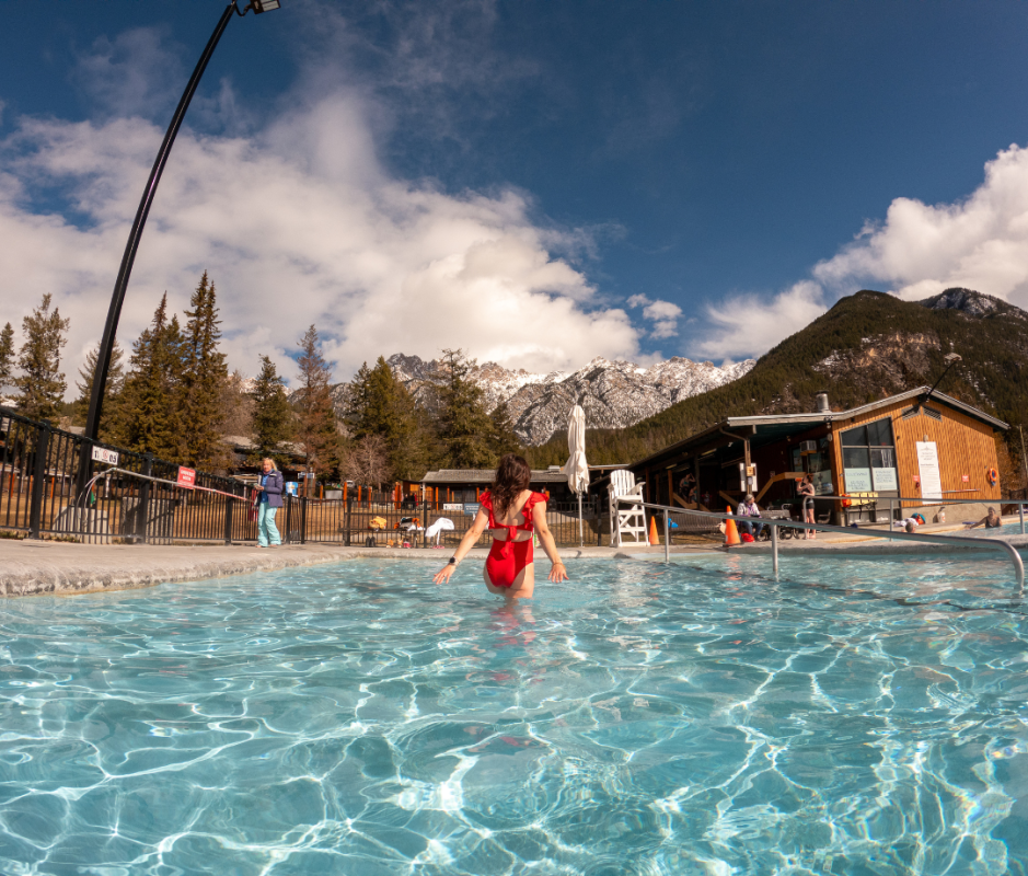 Then, I hit the road again for another hour drive up to Fairmont Hot Springs, which is the largest natural mineral hot springs in Canada and also has a mini ski hill ideal for kids. No lifts for me—this overnight stop was all about soaking up the healing waters to help my legs recuperate and prep for the next big resort. The 102°F, 89°F, and 86°F water in the pools is completely odorless, and there was plenty of space to soak in peace and stare out at the mountains across the valley before heading to bed in the hotel next door.